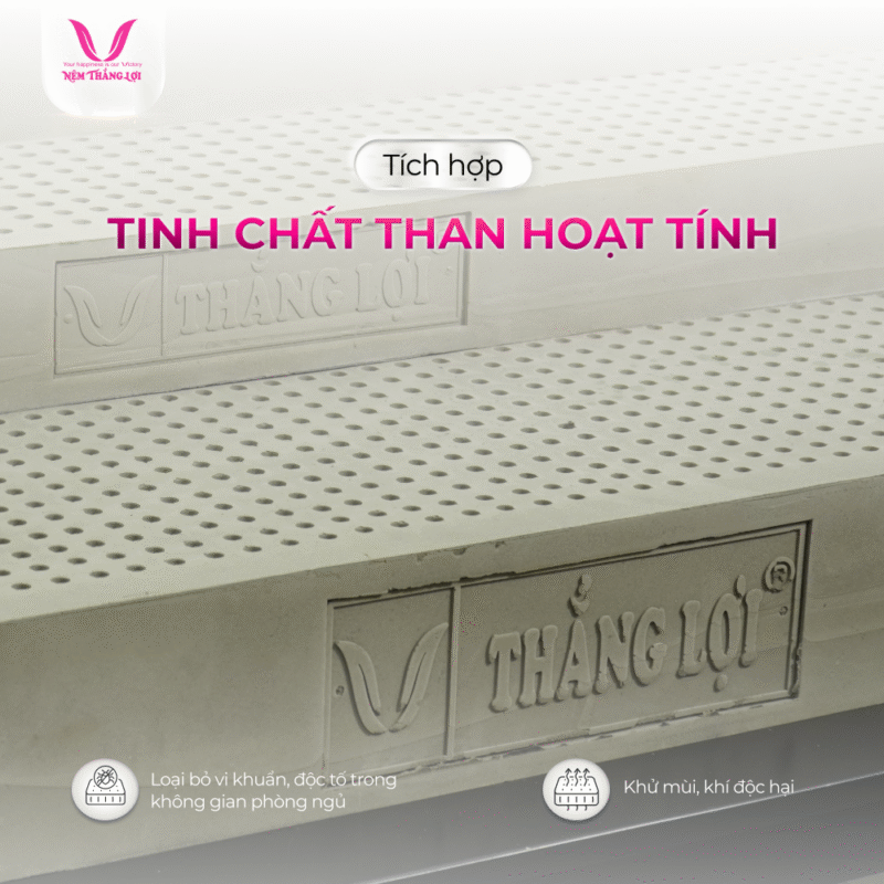Nệm 100% Cao Su Thiên Nhiên Thắng Lợi BoBo Than Hoạt Tính là sự kết hợp hoàn hảo giữa cao su tự nhiên và than hoạt tính giúp mang đến trải nghiệm ngủ êm ái, an toàn và tốt cho sức khỏe. Khám phá ngay!